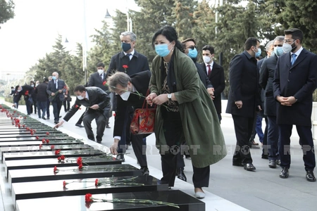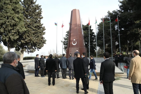 Daha sonra isə nümayəndə heyəti Azərbaycanın müstəqilliyi və ərazi bütövlüyü uğrunda mübarizədə canlarından keçən qəhrəman Vətən övladlarının xatirəsini yad etmək üçün Şəhidlər xiyabanını ziyarət ediblər və şəhidlərimizin məzarları üzərinə güllər düzüblər.