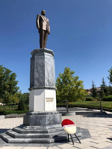 Bildirilib ki, ümummilli liderin parkdakı heykəli önünə əklil qoyulub.
