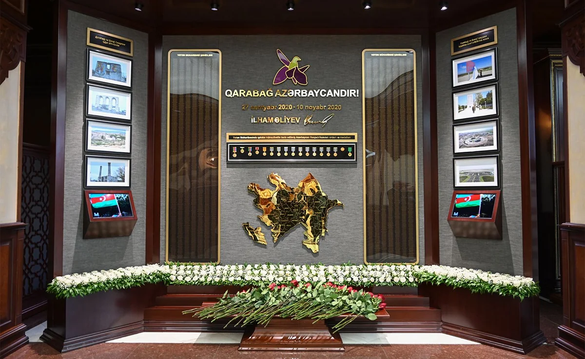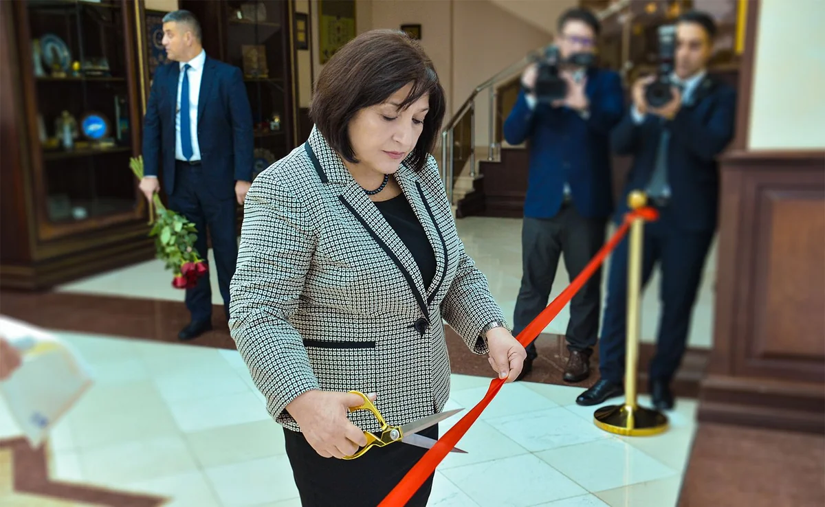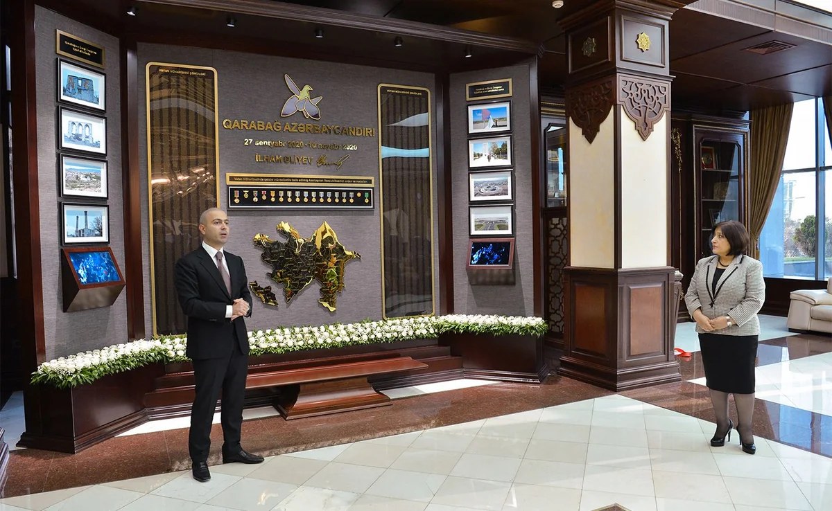 Sonra parlamentin foyesində yaradılmış “Zəfər Guşəsi”nin açılış mərasimi keçirilib. Milli Məclisin sədri Sahibə Qafarova qırmızı lenti kəsərək “Zəfər Guşəsi”nin açılışını edib.