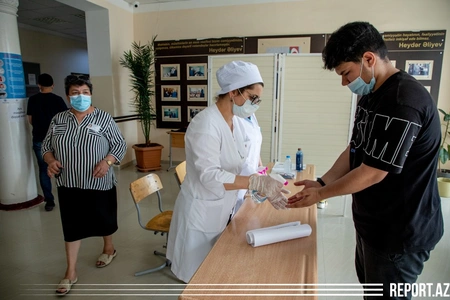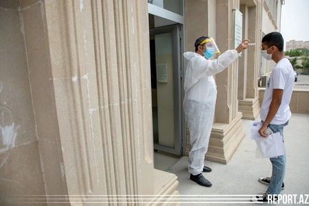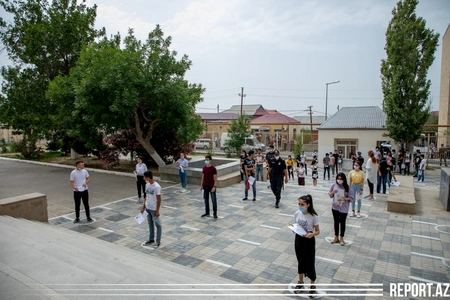 Kütləviliyin və təmas hallarının qarşısının alınması məqsədi ilə imtahan iştirakçıları üçün binalara müxtəlif daxilolma vaxtları müəyyən edilib. Şagirdlər (abituriyentlər) buraxılış vərəqəsində göstərilən vaxtda binaların qarşısında olublar. Onlar imtahana tibbi maska ilə gəliblər. İmtahan müddətində isə maskanı çıxarmaq qadağan edilib.
