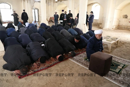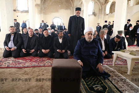 "Report"un Ağdama ezam olunmuş əməkdaşı xəbər verir ki, məsciddə Qafqaz Müsəlmanları İdarəsinin (QMİ) sədri şeyxülislam Allahşükür Paşazadənin imamətliyi ilə namaz qılınıb və ibadətlər edilib.