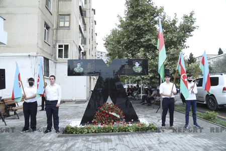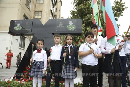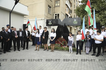 Azərbaycan Bayrağını ucaltdıqdan sonra şəhid olan hərbçinin xatirə lövhəsi açılıb