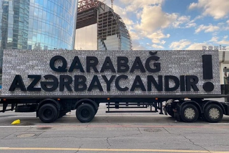 Lövhədə böyük hərflərlə “Qarabağ Azərbaycandır!” şüarı əks olunub.