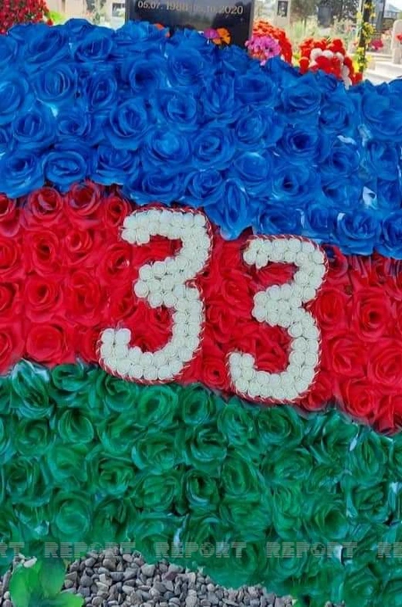 Şəhidin məzarı üzərinə gül dəstələri qoyulub, ruhuna dualar oxunub.