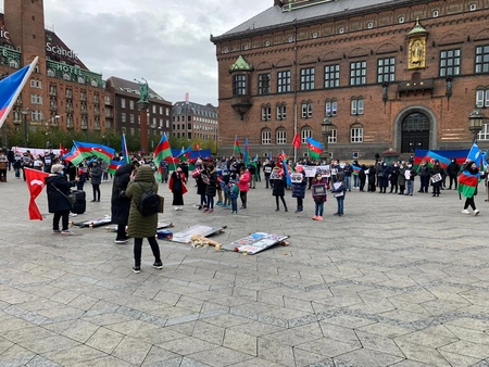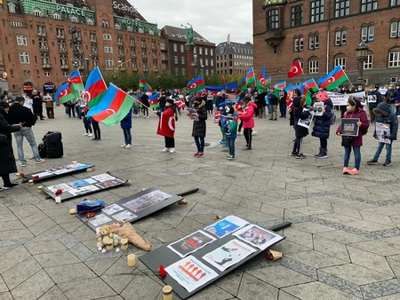 Danimarkada yaşayan azərbaycanlılar Kophenhagen şəhər bələdiyyəsinin binası qarşısındakı “Radhuspladsen” meydanında icazəli aksiya keçirib. Aksiya iştirakçıları Gəncə şəhərində və ölkəmizin digər yaşayış məntəqələrində Ermənistan silahlı qüvvələrinin vandalizm aktları törətməsini, mülki şəxslərin, o cümlədən azyaşlı uşaqların və qadınların qətlə yetirilməsini pisləyiblər.