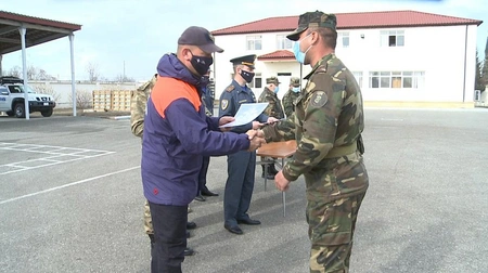 Kursu müvəffəqiyyətlə başa vurmuş FHN əməkdaşlarına müvafiq sertifikatlar təqdim edilib. FHN-in Qarabağ Regional Mərkəzinin inzibati binasında keçirilmiş təqdimetmə mərasimində iştirak edən fövqəladə hallar nazirinin müavini general-leytenant Etibar Mirzəyev, Rusiya Federasiyası Fövqəladə Hallar Nazirliyinin minaaxtaranlardan ibarət qrupunun rəhbəri polkovnik Aleksey Zavitskiy və digər məsul şəxslər sertifikatları istehkamçı-mütəxəssislərə təqdim ediblər.