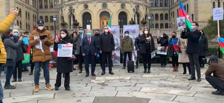 Osloda azərbaycanlılar parlament binası qarşısında etiraz aksiyası keçirib
