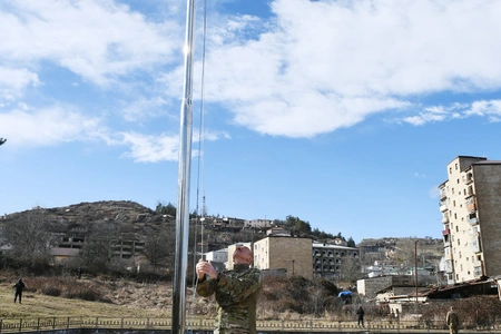 Prezident İlham Əliyev işğaldan azad olunmuş Şuşa şəhərinin mərkəzində Azərbaycan bayrağını qaldırıb.