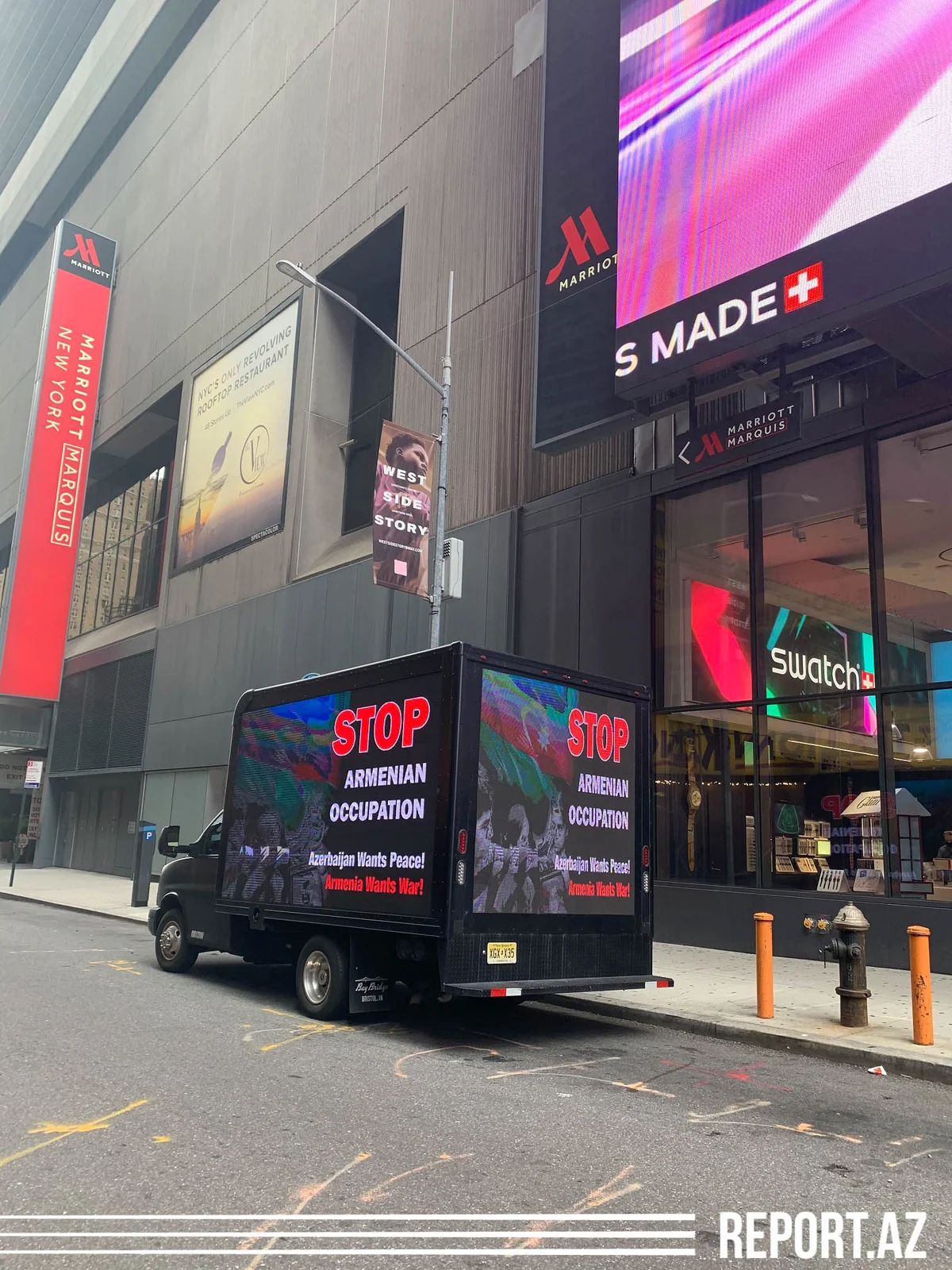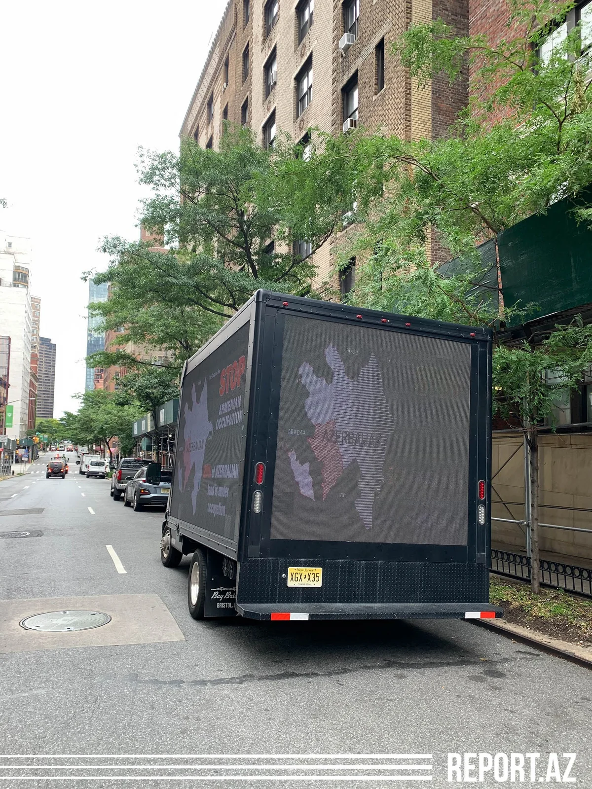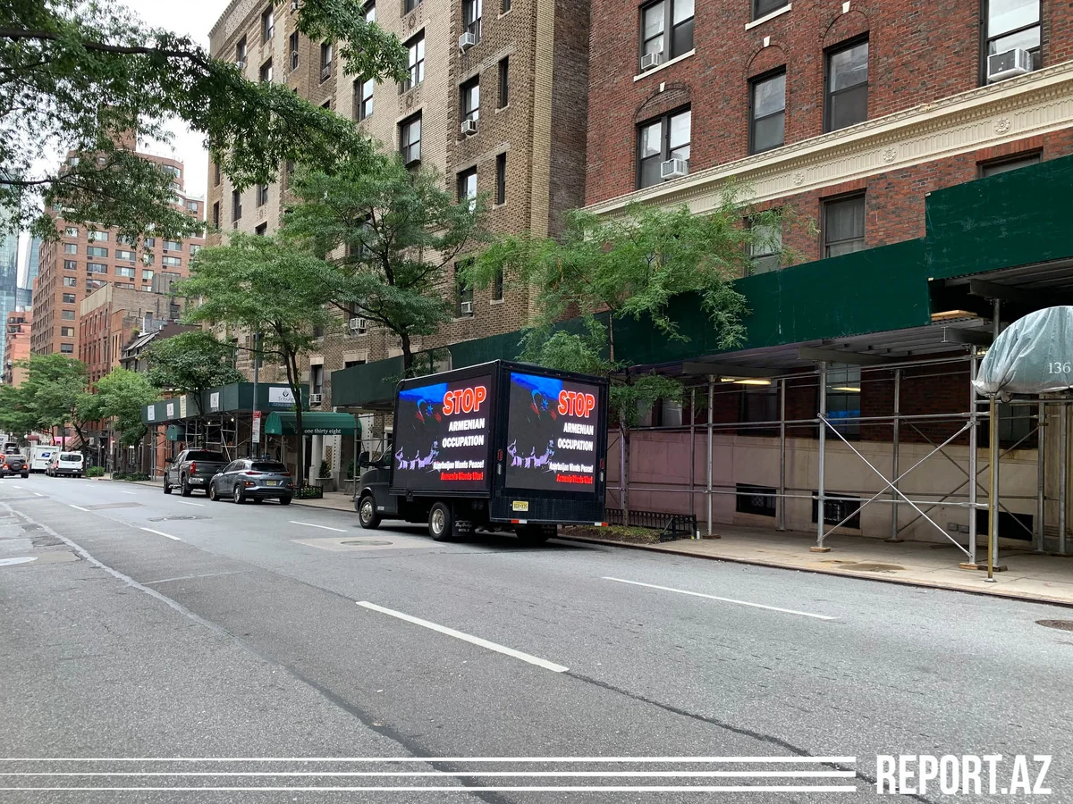 Rəqəmsal plakatların olduğu xüsusi maşınlar “Times” meydanında dayanıb. Avtomobillər Ermənistanın Nyu-Yorkdakı səfirlik binasının və BMT-nın baş qərargahı binasının önündən də keçib. Maşınlar gecə saatlarına qədər Nyu-Yorkda dövrə vuracaqlar.