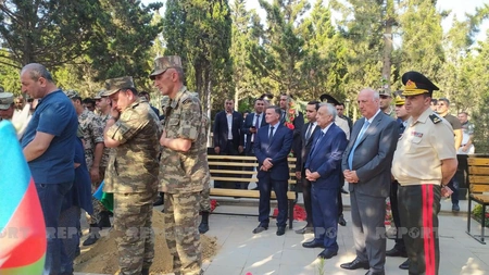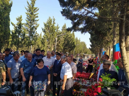 Mərasimdə şəhidlərin yaxınları ilə yanaşı ictimaiyyət nümayəndələri, hərbçi yoldaşları və qəsəbə sakinləri iştirak edir.