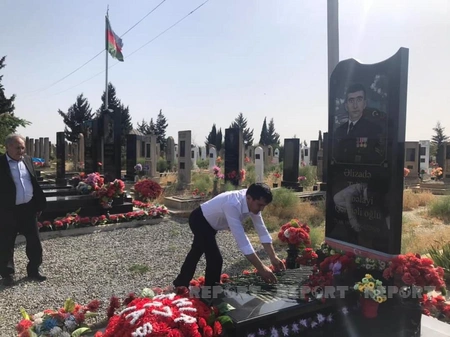Daha sonra şəhid gizirin məzarı ziyarət edilib. Məzarı üstünə tər güllər düzülüb.