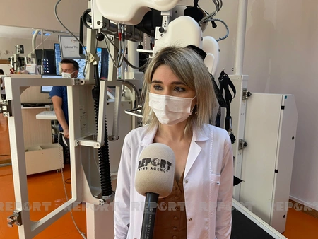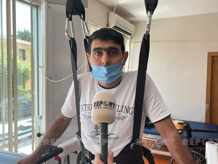 "Təbii ki, qazilərin hər birinin vəziyyəti müxtəlif cürdür. Bir qisminin ya sağ, ya sol ayağında hərəkətetmədə problem var. Fevralın 14-dən indiyədək burada qazilərimizin müalicə və reabilitasiyası ilə yaxından maraqlanırıq. Bildiyiniz kimi, fiziki terapiya və reabilitasiya uzun və vaxt aparan prosesdir. Lakin həm biz - həkim heyəti, həm də qazilərimiz müalicənin müsbət nəticələrindən olduqca məmnundur. Məsələn, təkcə buradakı beş qazimiz gəldiyi zaman ümumiyyətlə yeriyə bilmədiyi halda, indi onlar sərbəst şəkildə yeriyə və hərəkət edə bilirlər. Bütün qazilərimizə fiziki terapiya ilə yanaşı, psixoloji dəstək də təmin etməkdəyik. Bütün bu xoş nəticələr bizi daha da ümidləndirir, hər birinin tam sağlam şəkildə evlərinə qayıtmaları üçün səylə işləməyə davam edəcəyik".