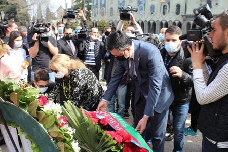 Onlar memorialın önünə əklil qoyaraq Gürcüstanın müstəqilliyi uğrunda şəhid olanların xatirəsini ehtiramla yad ediblər.