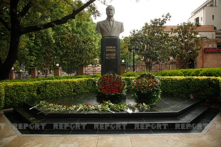 Ulu öndərin xatirəsi Rustavi şəhərindəki abidəsi önündə də ehtiramla yad edilib.