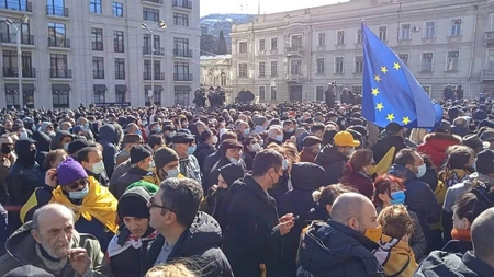 Qeyd edək ki, bu gün saat 15:00-da hökumət binasının qarşısında başlayan mitinq daha sonra parlamentin önündə davam etdirilib. Aksiyaçılar Vahid Milli Hərəkat Partiyasının sədri Nika Meliyanın azadlığa buraxılması və növbədənkənar parlament seçkilərinin keçirilməsini tələb ediblər. Müxalifət fevralın 26-na yürüş-aksiya təyin edib.