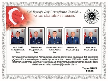 Türkiyənin milli müdafiə naziri Yaşar Gülər də hadisə bağlı açıqlama yayıb: "Qəhrəman döyüş yoldaşlarımız 2025-ci il noyabrın 11-də Azərbaycandan ölkəmizə uçan C-130 hərbi yük təyyarəmizin Gürcüstan-Azərbaycan sərhədində qəzaya uğraması nəticəsində şəhid olub. Şəhidlərimizin ailələrinə və xalqımıza öz adımdan və Milli Müdafiə Nazirliyinin üzvləri adından başsağlığı verirəm".