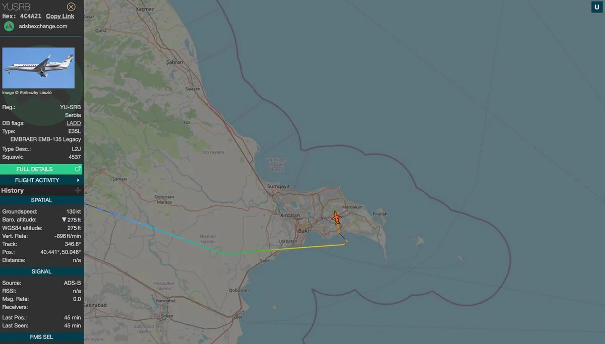 Serbiya Prezidenti Aleksandr Vuçiçin Qələbə Günü bayramında iştirak etmək üçün Moskvaya uçduğu təyyarə hazırda Bakıdadır.
