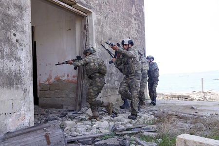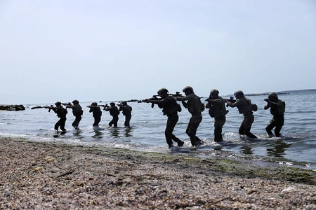 В рамках подготовки к международным учениям "Эфес-2022" азербайджанские военнослужащие выполнили задачи по проникновению в тыл противника морским путем, разминированию береговой линии, штурму прибрежных военных объектов условного противника и обезвреживанию террористов.
