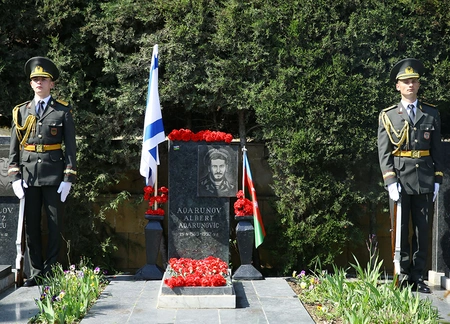 Как сообщили Report в министерстве обороны, военнослужащие сначала посетили могилу Национального героя Азербайджана Альберта Агарунова на Аллее шехидов, а затем посетили его памятник, установленный в Наримановском районе Баку, возложив цветы в его память.