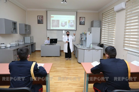 Затем официальный представитель Министерства обороны, генерал-майор Бекир Оруджев дал журналистам подробную информацию об истории создания, пути развития и деятельности военного лицея, учебно-образовательном процессе.