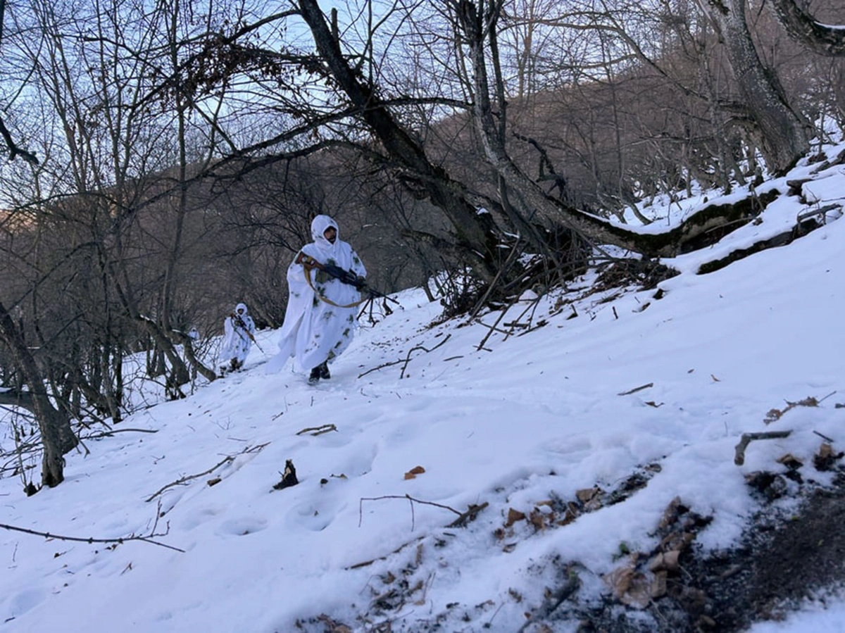 На учениях коммандосы отработали различные способы проделывания проходов через полосу препятствий, а также перемещения в суровых климатических условиях на местности со сложным рельефом.
