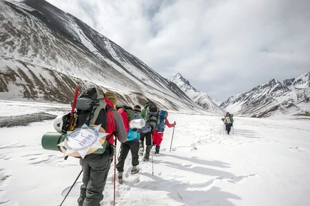 Участники экспедиции "Победа принадлежит Азербайджану!" пересекли горный район со сложным рельефом и поднялись на назначенную высоту.