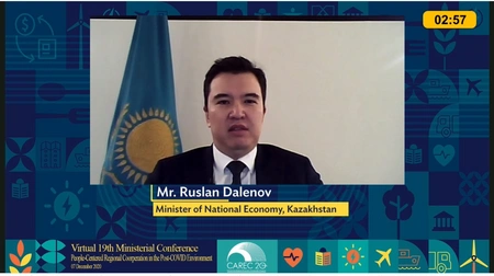 7 декабря в формате видеоконференции состоялась 19-я министерская конференция стран-членов Программы Центральноазиатского регионального экономического сотрудничества (ЦАРЭС) на тему "Ориентированное на людей региональное сотрудничество в условиях после пандемии COVID-19".