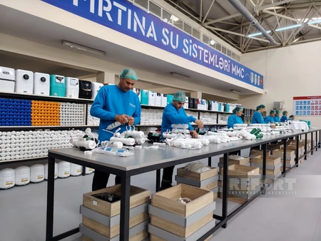 На предприятии, проектная стоимость которого составляет около 1,2 миллиона манатов, на основе китайской технологии производится оборудование для фильтрации и очистки жидкостей. Планируется производить 210 тысяч единиц фильтров, 15 тысяч устройств для фильтрации воды в год. Производимые здесь устройства и запасные части не только поставляются на внутренний рынок, но и экспортируются в Казахстан, Узбекистан и Турцию.