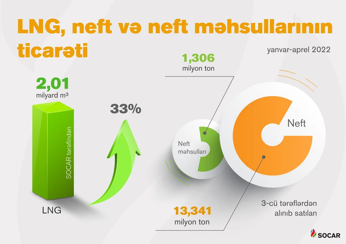 Было отмечено, что в январе-апреле текущего года SOCAR осуществил торговлю 2,01 млрд кубометров сжиженного природного газа (LNG). Это на 33% больше, чем за аналогичный период прошлого года.