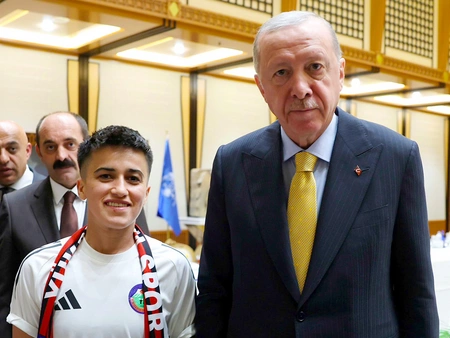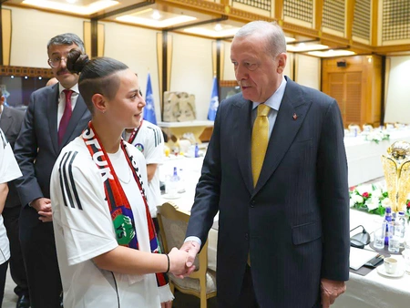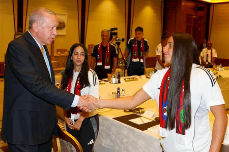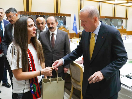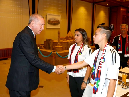 Президент Турции Реджеп Тайип Эрдоган принял женскую футбольную команду "Юксековаспор".
