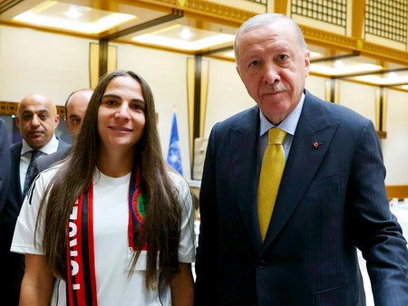 Футболистки сборной Азербайджана встретились с Реджепом Тайипом Эрдоганом