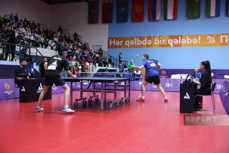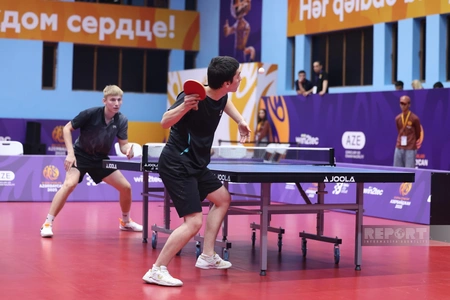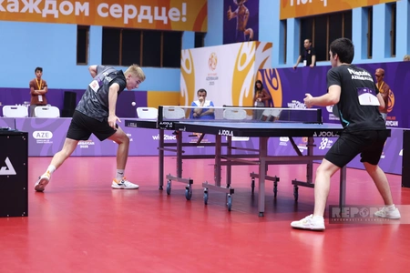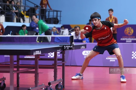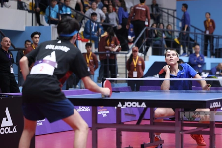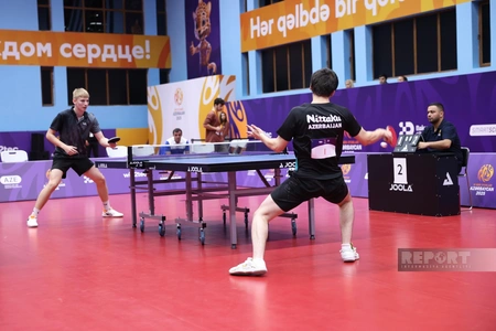 Как передает корреспондент Report из Габалы, спортсмен проиграл в индивидуальном соревновании россиянину Евгению Досову - 0:3.