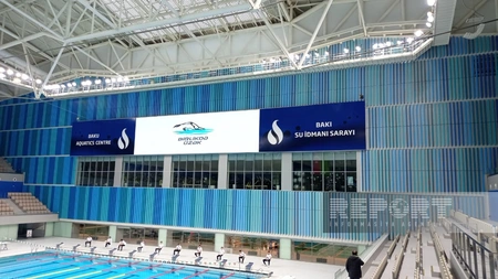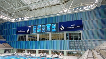 Соревнования по всей стране стартовали одновременно, а во Дворце водных видов спорта установлены специальные мониторы, через которые можно наблюдать за турнирами в других спортивных комплексах страны.