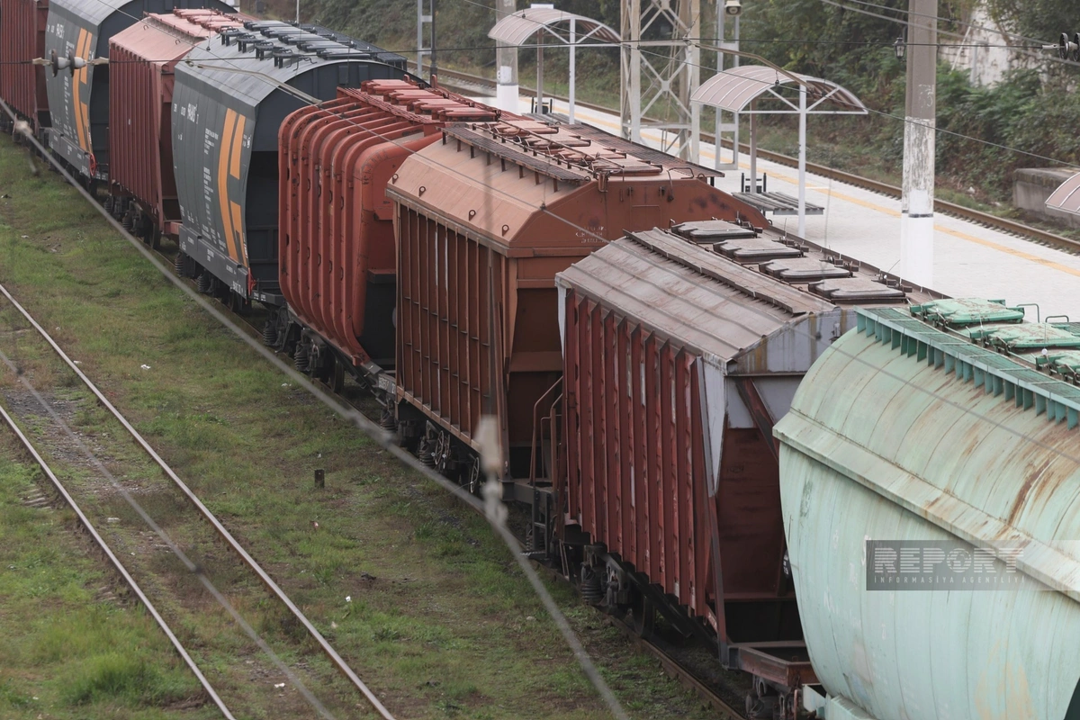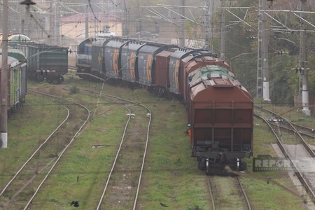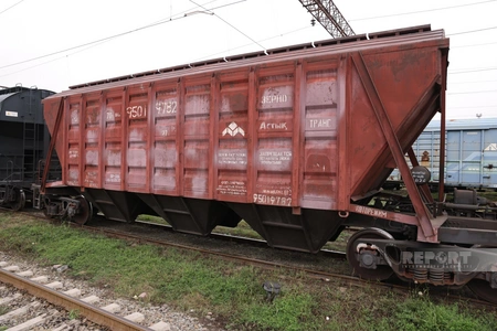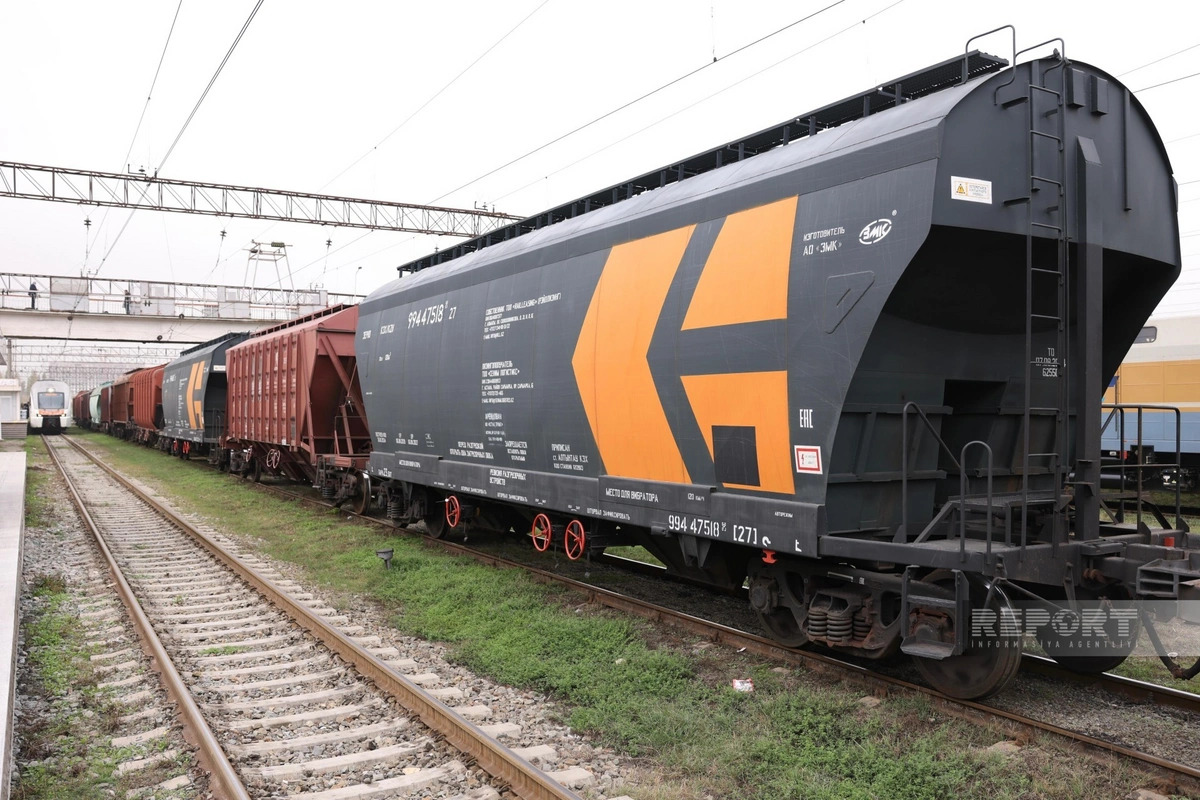 Грузовой поезд из 15 вагонов, перевозящий казахстанское зерно в Армению через территорию Азербайджана, прибыл на железнодорожную станцию Баладжары.