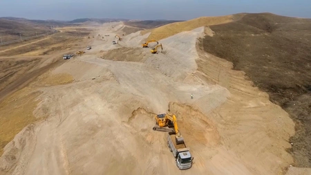 В настоящее время на первой 76-километровой части автомобильной дороги ведутся земляные работы. Так, с помощью специальной техники расширяется и профилируется дорога и строится новое земляное полотно шириной 29,5 метра в соответствии с первой технической категорией. В то же время, проводятся работы по топографии и геодезии, а также по очищению территории в соответствии с проектом. Для этого к строительным работам привлечено необходимое количество силы.
