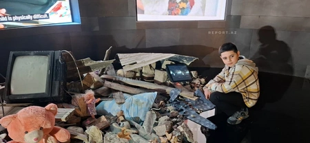 На открытой территории комплекса создана отдельная экспозиция. Представитель комитета отметил, что здесь посетителям представлены обломки жилых домов и объектов гражданской инфраструктуры, разрушенных в результате ракетного удара Армении.