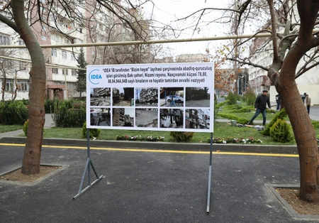 14 декабря в рамках проекта "Наш двор", осуществляемого по инициативе вице-президента Фонда Гейдара Алиева, учредителя и руководителя общественного объединения IDEA Лейлы Алиевой, сдан в пользование жителей очередной обновленный двор.