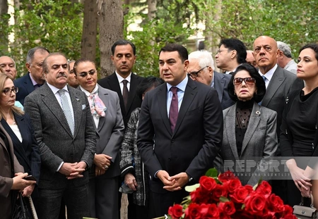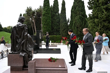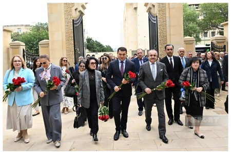 По случаю 18 сентября - Дня национальной музыки - министр культуры Адиль Керимли, коллектив министерства, известные деятели культуры и искусства посетили могилу композитора Узеира Гаджибейли на первой Аллее почетного захоронения.