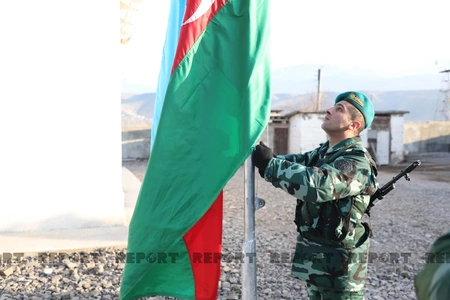 Над освобожденными от оккупации пограничными заставами развевается государственный флаг Азербайджана.