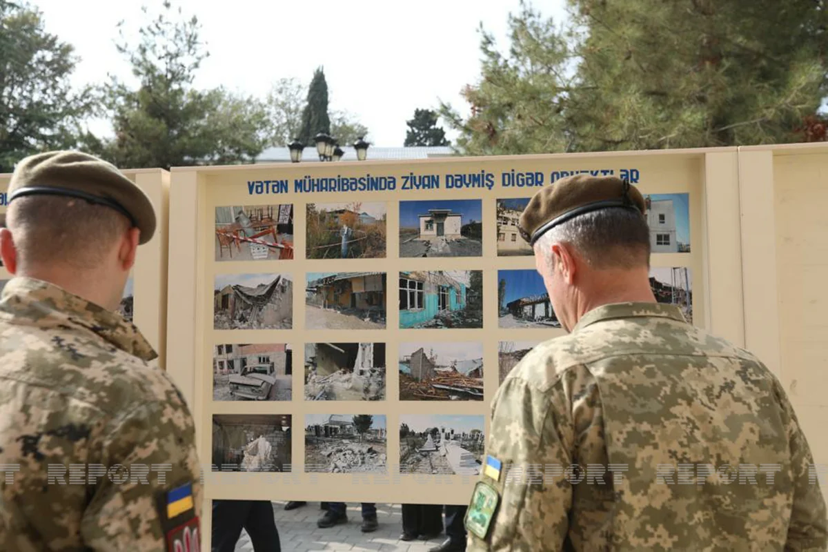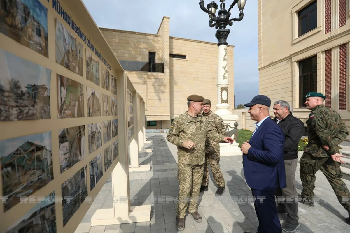 Как передает корреспондент Report, дипломаты ознакомились с фотостендами, которые наглядно демонстрируют происходящие в ходе Отечественной войны события, разрушенные дома, объекты, кладбища.
