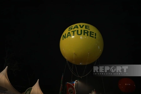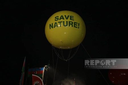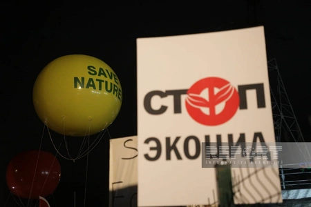 По словам освещающего акцию сотрудника Report, протестующие выпустили в небо воздушные шары с надписями Save Nature! и Stop Ecocide!
