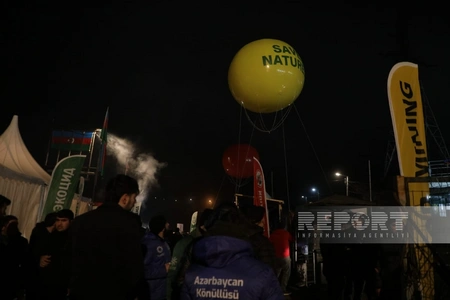 Несмотря на холодные погодные условия на дороге Ханкенди-Лачын участники акции протеста против незаконной эксплуатации месторождений полезных ископаемых в Карабахском экономическом районе Азербайджана выпустили в небо воздушные шары.