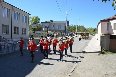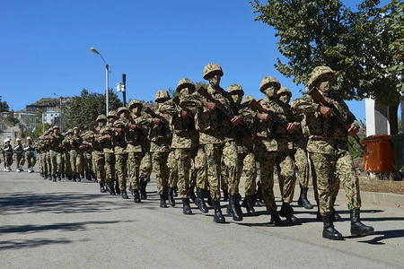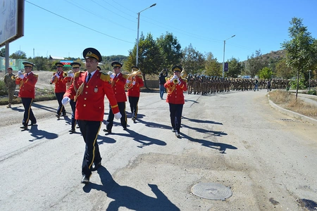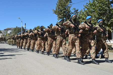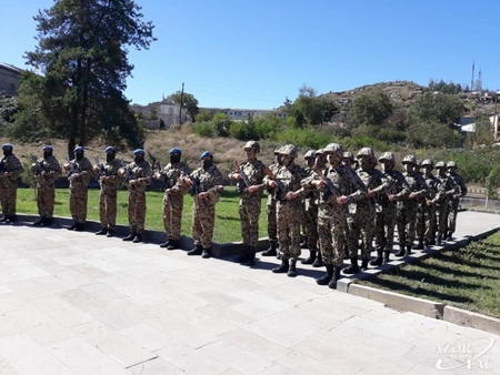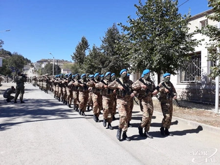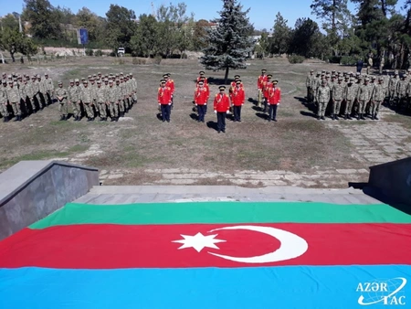 На Площади флага под звуки Государственного гимна был поднят Государственный флаг, произведен залповый выстрел в воздух. Затем азербайджанские солдаты совершили шествие к Шушинской крепости.