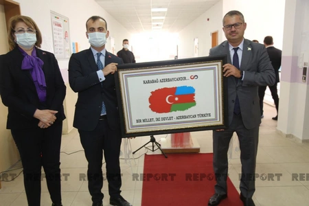 В учебном заведении вывешены фотографии, отражающие отвагу Национального героя Мубариза Ибрагимова и азербайджано-турецкое братство.