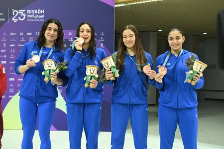 Женская сборная Азербайджана по плаванию завоевала бронзовую медаль на VI Играх исламской солидарности, проходящих в столице Саудовской Аравии Эр-Рияде.