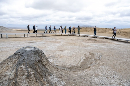 Затем состоялся медиатур в Туристический комплекс грязевых вулканов. Отмечается, что Туристический информационный центр комплекса, расположенного на территории в 12 га, состоит из выставочного зала и мастерской. В комплексе можно получить информацию об особенностях грязевых вулканов, их природных и лечебных свойствах, а также ознакомиться с макетом грязевого вулкана.