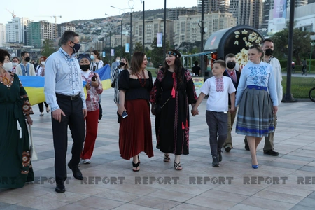 Украинские дипломаты совместно с представителями украинской общины в Азербайджане отметили в Баку Всемирный день вышиванки. Как сообщает Report, они провели праздничное шествие по Бакинскому приморскому бульвару, исполняя национальные украинские песни.