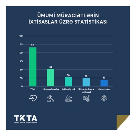 Что касается наиболее частых специальностей, то зарегистрировано 70 заявителей по медицине, 31 - по праву, 16 - по экономике, 15 - по управлению бизнесом, 13 - по менеджменту.