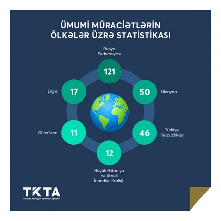 Согласно статистике обращений по странам, 121 обращение было из России, 50 - Украины, 46 - Турции, 12 - из Соединенного Королевства Великобритании и Северной Ирландии, 11 - из Грузии и 17 - из других стран.