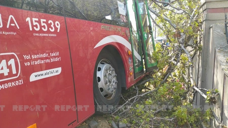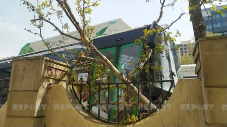 Эксплуатируемый ООО BakuBus пассажирский автобус марки Iveco с государственным регистрационным знаком 99 JU 240, курсирующий по регулярному маршруту №2, врезался в дерево. В результате два пассажира получили травмы, водитель почувствовал себя плохо.